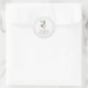 Featuring a delightful illustration of a charming duck in a bow tie and party hat, this round sticker is framed by a soft pastel green gingham border for a whimsical and rustic look.