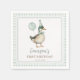 Featuring a delightful illustration of a charming duck in a bow tie and party hat, this party napkin is framed by a soft pastel green gingham border for a whimsical and rustic look.