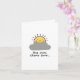 This get well greeting card features a cheerful cartoon sun peeking out from behind a grey cloud, symbolising hope and brightness in challenging times. The simple, childlike style of the sun with its yellow smiling face and rays exudes a sense of positivity and comfort. Below the cloud, the heartfelt message One more chemo down... in a simple, dark grey font captures the courage and strength of the recipient as they navigate through their treatment journey. 🌞💛
