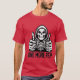 I give wanted to give this a 4 instead of a 5 because these Basic DARK T0shirts run unexpectedly SLIM or Narrow. Which is great if you do not have a potbelly, but I have a paunch. It isn't the shirt's fault that I've got a beer belly. The design and shirt itself is a quality cotton shirt. The color is more of a deep purple, but still a very pretty color. The Basic DARK T-shirts run a bit SLIMMER than the Basic Ts. The neck is a fraction narrower (or seems to be narrower) also. I'm a paunchy middle-aged woman and my neck is 12 inches (31cm) thick and the neckline fell about the same as in the photo of the man, and I had the desire to tug it a bit. So if you're a thick necked man or like loose shirts, be aware these are slimmer shirts. Once I get rid of my lockdown paunch it'll look great. The shirt washed well in cold water with no apparent bleeding. We don't have a dryer, so it hung dry. Did not shrink. Love the colors and the design. The design looks smaller on my shirt than it does on the model on-line. But still, it looks good on the shirt. The printing looks as it does on the model, just the size seems fractionally smaller. Washed garment in cold water, hung dry and design appeared unaffected.