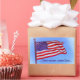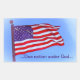 Image of Old Glory, flag of the USA, flying free in a blue sky, with words from the pledge of allegiance, "...one nation under God..."