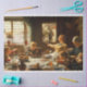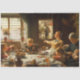 This design features a painting by the British artist Frederick George Cotman (1850–1920). It shows a donkey or horse being fed through a window. The donkey has its head in the dining room of a traditional English house while the family is eating its dinner. It is a large family with a mother and father, three small children, and an elderly grandmother. There is also a dog in the house, trying to get some food from the mother, who is feeding the donkey. The original artwork was painted in 1880.