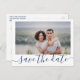 Send our horizontal save the date postcards with one picture to let your guests know to block off your wedding date. The colours for all text are customisable - you can choose a colour from one of the options shown, or click "Edit Design" where you can change each text box to whatever colour you would like. The back side has coordinating colour scheme, but you can easily change the colour of the background and/or wording if you want to customise your save the dates further. Be sure to check out our large selection of photo save the date cards, postcards, and magnets by browsing our Picture Save the Date collection!