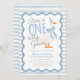 One Silly Goose Blue Bow 1st Birthday Invitation