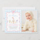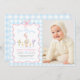 One Silly Goose Blue Gingham 1st Birthday Photo Invitation