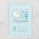 One Silly Goose Blue Party Hat Boy First Birthday Invitation