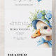 the story of a joyful milestone— very first birthday, a celebration wrapped in love, warmth, and a touch of whimsy. The design centres around a charming goose, lovingly illustrated as if plucked from the pages of a beloved children’s book. He’s not just any goose—He’s “one silly goose,” dressed for a party in a striped hat and floral crown, proudly clutching a Blue balloon. His expression is wide-eyed, innocent, and full of personality—just like a one-year-old discovering the world.
