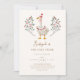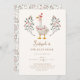 Cute goose theme birthday party invitation card featuring a cute illustration of a goose with a party hat and a crown ruffle collar with red berry botanicals. The text says "XX is one silly goose!"