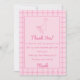As you see this 1st birthday thank you card features the one silly goose pink theme. With hand drawn goose and gingham checkboards with hand written script of thank you and thank you paragraph template. All of this design template is easily customisable by clicking on the personalisation button.
