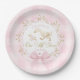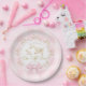 One Silly Goose Pink Gingham 1st Birthday Bow Paper Plate