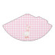 On the front, there is a cute white goose with a pink party hat and a ribbon bow at its neck. The background is pink and white gingham chequered plaid pattern.