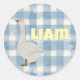 Bring joy and personality to your party with this One Silly Goose sticker, designed with a cosy blue and white plaid background, an adorable cartoon goose, and soft pale yellow lettering. This playful yet classic design is perfect for kids’ birthday parties, baby showers, and animal-themed celebrations.