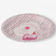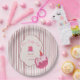 Add a sweet and playful touch to your party table with these adorable paper plates featuring a sleepy pink kitty, party hat, tiny birthday cake, striped background, and vintage-style frame details. Perfect for a charming cat-themed 1st birthday celebration.