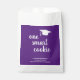 Modern graduation favour bag featuring a simple and cute design with a grad cap and "one smart cookie" in a thick script handwriting along with the graduate's name, class year and school name in white over a purple background. The background colour may be changed to any colour you wish. These favour bags are perfect for a girl graduate and are a great way to add a personal touch to your party favours.