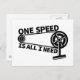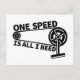 A fun design for people who love to ride single speed or fixed gear bikes. A black and white, vector illustration of a bicycle crankset. The chain runs to a single rear cog. The text, in black, reads One Speed Is All I Need.