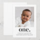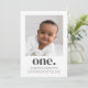 A modern First Birthday invitation featuring your own photo and the word 'one.' underneath.