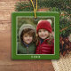 One Square Photo plus Year - minimal green border Ceramic Ornament