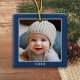 One Square Photo plus Year - minimal navy border Ceramic Ornament