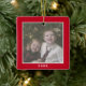 One Square Photo plus Year - minimal red border Ceramic Ornament