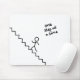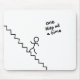 Hand drawn black stick man running up a flight of stairs with "one step at a time" slogan mouse pad