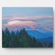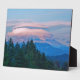 The setting sun casts colours across the land, and highlights the clouds surrounding Mount Rainier.