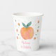 This adorable design features a hand painted watercolor peach with faux gold foil confetti dots.