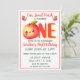 Celebrate a special milestone with this adorable fruit-themed birthday invitation. The design features a charming kawaii peach character paired with soft watercolor floral accents and bold, playful typography. This invitation is perfect for parents planning a "Sweet Peach" themed first birthday party for their little girl.