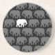 This unique pattern features silhouettes of elephants walking in alternating directions. Each elephant is coloured dark grey with a lone one painted pure white. The pattern has a black background which makes the lone white elephant really stand out. This fun design is perfect for animal lovers and anyone who feels that they stand out in a crowd.
