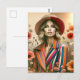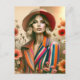 One Woman Two Styles Stripes Fashion Sketch Postcard