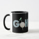 Golfing mug for golf lovers and sports fans. Golf Logo in soft shades of blue on black