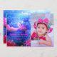 This invitation uses blue and pink as main colour pallet. Depth in the design is given attention by making the fishes look very far from the main focal view point. Lighting effects are used especially in the mermaid tail, to make it the star of the design