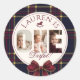 OneDerful 1st Birtdhay Burgundy Classic Plaid Classic Round Sticker