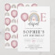 Cute whimsical little miss ONEderful theme watercolor boho rainbow girl's 1st birthday invitation with balloons. A cute balloon and rainbow pattern on the back of the invitation, with pastel pinks, blues and gold and little pink hearts. Available as a digital download, or in print, or both!