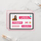 We live in such a technological age of computers, cell phones, and tablets. These can help bring us together with our friends and family. Even if you can’t have in-person parties for birthdays, baby showers, bridal showers, etc. We can certainly bring ourselves closer to our loved ones via video chat. So… why not throw your very own online party for an upcoming celebration. We’ve created this unique and fun online video chat party invitation. Take your next party celebration online with our tablet text message group video chat party invitation. The invitation is designed to look like a tablet with text messages displaying party details, along with a photo of the birthday recipient. The reverse side looks like the backside of a tablet with a monogram tablet grip knob. All artwork is created by Moodthology.