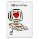 These cute greeting cards to send to your internet lover features a red heart on a computer screen. These greeting cards can be customised with your own special message.