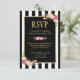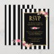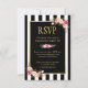 Online RSVP Floral Gold Black and White Striped Card
