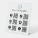 Modern online social media business pedestal sign featuring your company logo, and 6 QR codes for you to replace with your own.