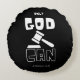 This round pillow showcases the words "Only God Can Judge Me" in a unique noot print font with white letters plus a judge gavel in the centre of the wording with this biblical saying theme. This pillow is made with high quality fabric our pillows are soft and wrinkle-free the cover is machine washable.
