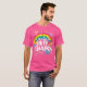 I give wanted to give this a 4 instead of a 5 because these Basic DARK T0shirts run unexpectedly SLIM or Narrow. Which is great if you do not have a potbelly, but I have a paunch. It isn't the shirt's fault that I've got a beer belly. The design and shirt itself is a quality cotton shirt. The color is more of a deep purple, but still a very pretty color. The Basic DARK T-shirts run a bit SLIMMER than the Basic Ts. The neck is a fraction narrower (or seems to be narrower) also. I'm a paunchy middle-aged woman and my neck is 12 inches (31cm) thick and the neckline fell about the same as in the photo of the man, and I had the desire to tug it a bit. So if you're a thick necked man or like loose shirts, be aware these are slimmer shirts. Once I get rid of my lockdown paunch it'll look great. The shirt washed well in cold water with no apparent bleeding. We don't have a dryer, so it hung dry. Did not shrink. Love the colors and the design. The design looks smaller on my shirt than it does on the model on-line. But still, it looks good on the shirt. The printing looks as it does on the model, just the size seems fractionally smaller. Washed garment in cold water, hung dry and design appeared unaffected.