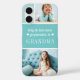 Celebrate a new (or experienced!) grandmother with this beautiful custom phone case bearing two photos and a sweet message. "Only the best moms get promoted to Grandma" appears in the centre in white lettering on a turquoise background accented with two hearts. Customise the text to reflect grandma's preferred name (grammy, nana, nonna, meema, etc) and add two treasured photos of her grandchildren.