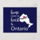 Ontario, Canada - home is where the heart is in white mixed script, uppercase and lowercase sans font. Silhouette of the province of Ontario in white with a red heart overlay. Ontario can be changed to the city or town of your choice.