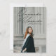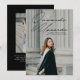 Modern graduation announcement featuring the graduate's vertical photo with "Onwards and Upwards" in a black handwritten script. Personalize the front of the photo graduation announcement by adding the graduate's name, school, and graduation year. The announcement reverses to display an additional photo with the graduate's future plans, grad party details, etc. shown below.