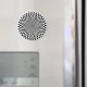 A two toned circular Op Art style design which is made up of circles of rays, each offset to create an alternating pattern.