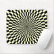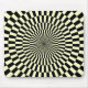 A two toned circular Op Art style design which is made up of circles of rays, each offset to create an alternating pattern.