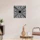 Make a bold statement with this striking Op Art poster featuring a radial sunburst pattern of alternating black and white rays converging on a central black circle. The dynamic lines create an optical illusion of depth and motion, drawing the eye to the focal point while adding modern sophistication to any space. Perfect for minimalist interiors, creative studios, or gallery walls, this piece combines clean geometry with high-contrast drama.
