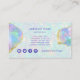 This modern and elegant business card features colourful rainbow pastel opal gemstones accented with gold glitter edges. This bright and girly design is perfect for any professional business woman looking for a fun artistic corporate identity. Perfect for an event planner, makeup artist, hair stylist, salon owner and more! Order yours today and stand out from the crowd!