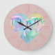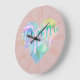 Opal Gemstone Heart with Holographic Drips on Pink Large Clock