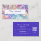 Modern and stylish, this opal iridescent business card, featuring your name in chic script calligraphy on the front and a vibrant violet background on the back. An excellent way to impress your clients with a unique design and make the right impact to be remembered. This contemporary layout is perfect for any professional like a makeup artist, nail specialist, hair stylist, beauty salon owner, aesthetician, beautician and more. Personalise the front with your name and title (or website address) and include your name, title, phone number, email, website address, social media accounts, and a scannable QR code on the back.