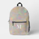 Carry your essentials in style with our Personalised Opal Stone Backpack, where fashion meets functionality with a feminine twist. The background showcases a stunning opal stone texture, blending soft pastel shades of blush pink, lavender, mint, and pale blue, all highlighted with delicate foil gold accents that shimmer beautifully with every move.