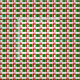 This Christmas fabric has a mid-century modern design of repeating orange rectangles with white rectangles inside alternating with teal rectangles.